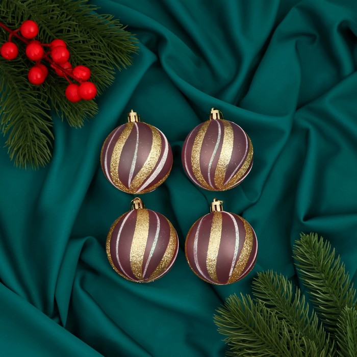 Набор из 4 розово-золотистых ёлочных шаров диаметром 6 см сочетает в себе черты новогоднего барокко, советского стиля и фьюжн. Пластиковые украшения с изящным рисунком создают нежный и торжественный акцент в праздничном интерьере.