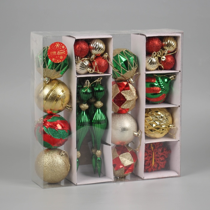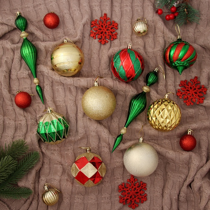 Праздник начинается с деталей Этот набор превращает ёлку в пространство зимней сказки и добрых традиций. Красно-зелёные оттенки, разнообразие форм и точность рисунка делают его центральным элементом декора. Используйте игрушки как основу или как часть уже существующего оформления — они одинаково хорошо работают в разных идеях праздничного убранства. Комментарии к товару