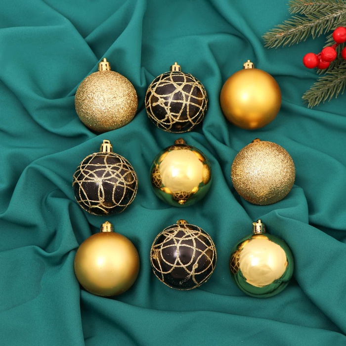 Эти шары создают образ Нового года, где важны не яркие краски, а баланс света и формы. Золотые и тёмные тона добавляют дереву благородства, но остаются в рамках классической зимней эстетики. Используйте игрушки как основу или как часть уже существующей композиции — они одинаково хорошо работают в разных интерьерах и тематиках праздника.