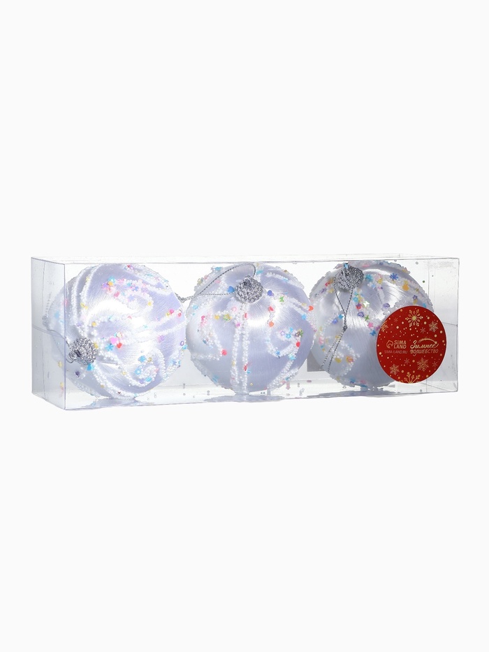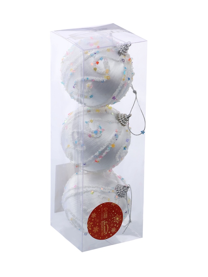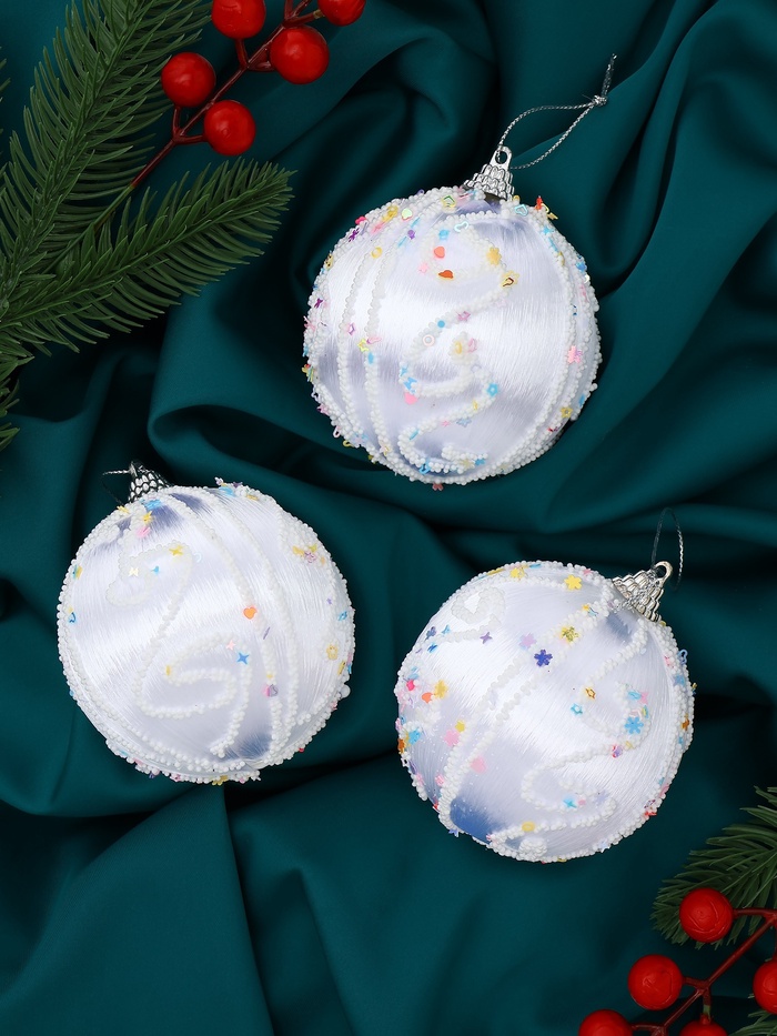 Создаём праздничное настроение Эти шары отражают огни гирлянд и наполняют пространство уютом. Их дизайн помогает подчеркнуть красоту зимних праздников и добавить изысканные акценты в украшение ёлки. КомплектацияНабор шаров - 3 штуки. Комментарии к товару