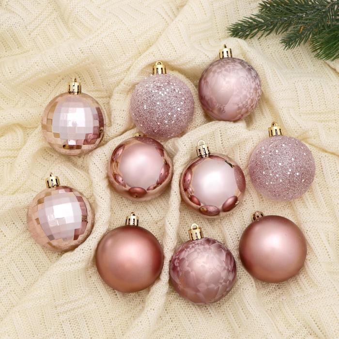 Новогодние шары нежного розового цвета — это яркий и запоминающийся акцент для праздничной ёлки в скандинавском стиле. Набор из 10 пластиковых игрушек диаметром 6 см станет универсальным решением для создания уютной и светлой атмосферы зимнего торжества. Однотонный дизайн делает их идеальной базой для любого новогоднего оформления.