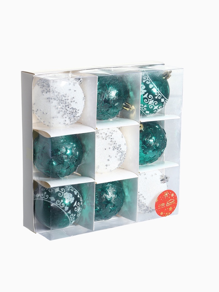 Габариты: 24 x 24 x 8 Страна: Китай В боксе: 32 набор В наборе: 9 набор Состав: Пластик Материалы: пластик Фасовка: по 1 набор Индивидуальная упаковка: Пластиковая коробка Сертификат: Не подлежит сертификации Набор: Да Цвет: МИКС, Белый, Зелёный Диаметр шара, см: 8 В наборе, шт.: 9 Рисунок: Да Символ года: Нет Тематика праздника: Новый год Материал: Пластик Стиль: Скандинавский, Датский Набор из 9 пластиковых шаров диаметром 8 см с узорами в зелёно-белой гамме, выполненных в скандинавском стиле. Эти украшения создают спокойную и уютную атмосферу, подчёркивая минимализм и природную гармонию новогоднего декора. Особенности