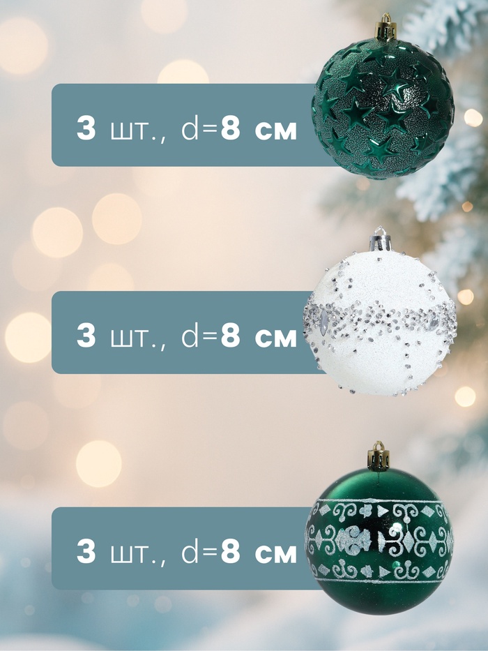 Создаём атмосферу северного уюта Эти шары с характерными узорами в скандинавском стиле помогают наполнить пространство ощущением спокойствия и чистоты. Их лаконичный дизайн гармонично сочетается с разными элементами праздничного интерьера, делая украшение ёлки стильным и современным. КомплектацияНабор шаров - 9 штук. Комментарии к товару