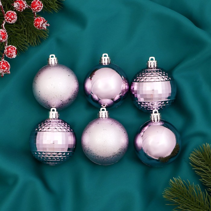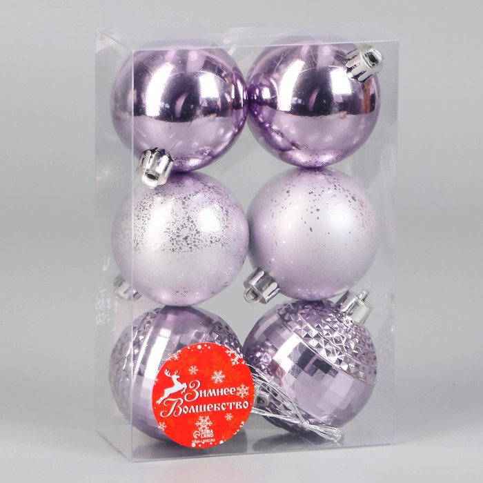 Набор из шести сиреневых ёлочных шаров диаметром 6 см воплощает стиль шебби-шик в праздничном оформлении. Однотонные украшения из пластика создают сдержанный и элегантный акцент для новогодней ёлки.