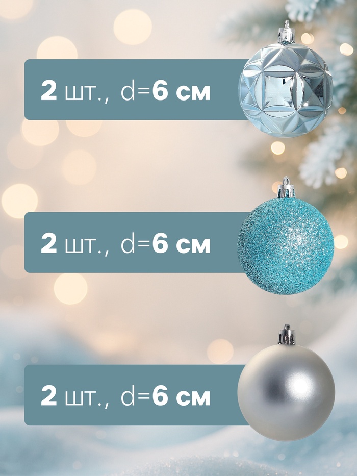 Эти шары создают образ Нового года, где каждый элемент работает на общий уют и стиль. Серебро и голубой добавляют ёлке свежести и торжественности, но остаются в рамках лаконичного и выверенного оформления. Используйте их как основу или как дополнение к уже имеющемуся декору — они одинаково хорошо вписываются в разные интерьеры и подходы к праздничному дизайну.