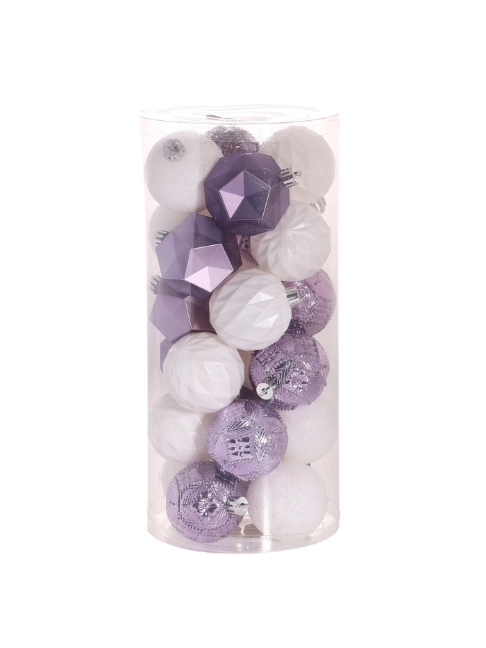 Праздничный акцент с характером Эти украшения привносят в интерьер лёгкость и утончённость. Грани создают игру света и тени, подчёркивая изящность и глубину оттенков. Такой набор помогает сформировать гармоничный образ новогоднего декора, который радует глаз и создаёт праздничное настроение. КомплектацияНабор шаров - 24 штуки. Комментарии к товару