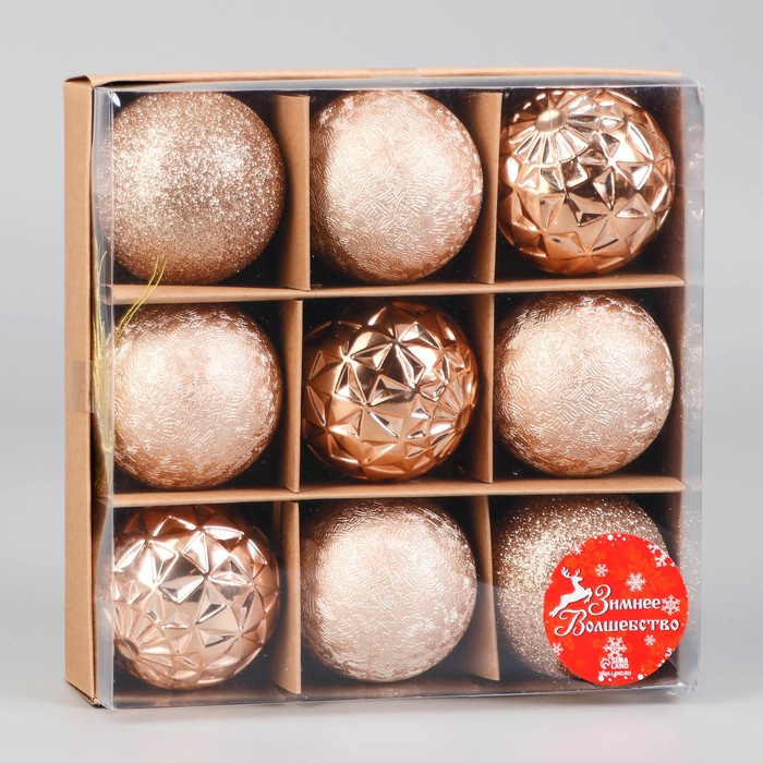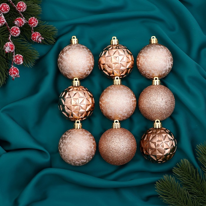 Праздничное оформление Эти шары добавляют глубину и динамику в дизайн новогодней ёлки, отражая свет и создавая игру бликов. Их текстура и цвет подчёркивают традиционный дух праздника, гармонично вписываясь в различные стилистические решения интерьера. КомплектацияНабор шаров - 9 штук. Комментарии к товару