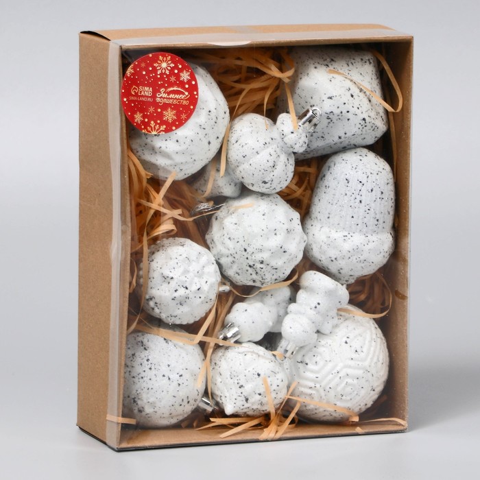 Габариты: 22 x 17 x 7 Страна: Китай В боксе: 36 набор В наборе: 11 набор Состав: Пластик Материалы: пластик Фасовка: по 1 набор Индивидуальная упаковка: коробка Сертификат: Не подлежит сертификации Набор: Да Цвет: Белый В наборе, шт.: 11 Рисунок: Да Символ года: Нет Тематика праздника: Новый год Материал: Пластик Стиль: Классика, Скандинавский, Датский, Ар-деко, Советский Фиксированная цена: Да Набор из 11 белых ёлочных украшений представляет собой гармоничное сочетание классики и современных тенденций в оформлении новогоднего интерьера. Пластиковые элементы выдержаны в скандинавском, датском и ар-деко стилях с отголосками советской эстетики, что создаёт универсальный и сдержанный праздничный декор. Особенности