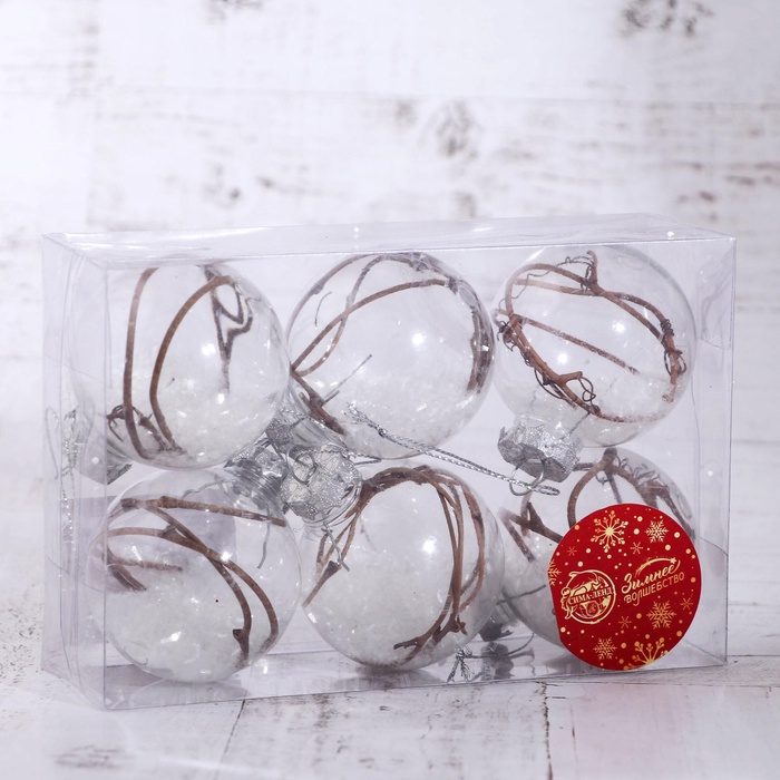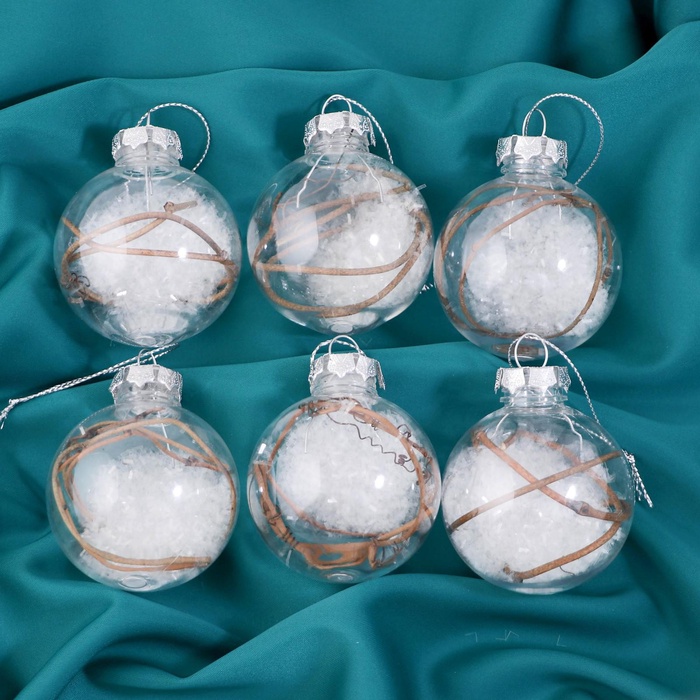 - Комплект из 6 прозрачных шаров с белым наполнением.