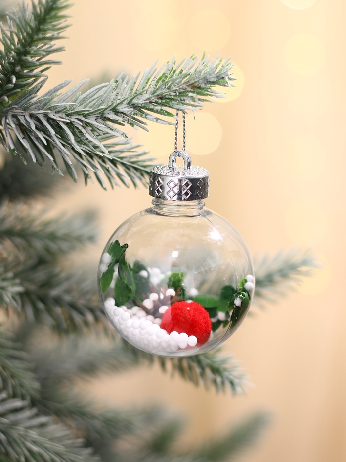 Эти шары подойдут как основной элемент декора или яркое дополнение к уже существующему оформлению. Прозрачные детали добавляют глубины, а белые — уюта. Их можно чередовать между собой или расставлять группами — чтобы создать ощущение зимнего света на ёлке. Такой декор идеально впишется в атмосферу тихого семейного праздника.