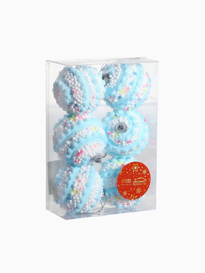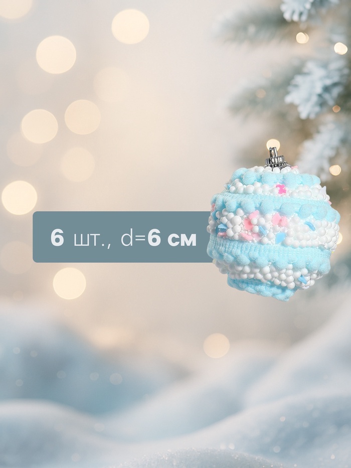 Создаём атмосферу праздника Голубые шары с матовой фактурой гармонично сочетаются с другими украшениями, добавляя свежести и лёгкости. Они отражают свет гирлянд, наполняя пространство зимним спокойствием и праздничным настроением. КомплектацияНабор шаров - 6 штук. Комментарии к товару