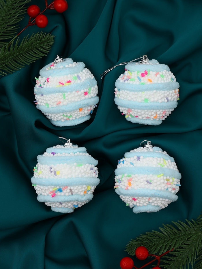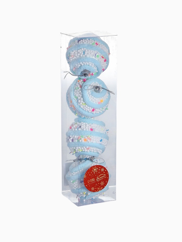 Создаём праздничное настроение Голубые шары отражают огни гирлянд, наполняя пространство спокойствием и свежестью зимнего утра. Их дизайн гармонично сочетается с другими украшениями, подчёркивая красоту новогоднего праздника. КомплектацияНабор шаров - 4 штуки. Комментарии к товару