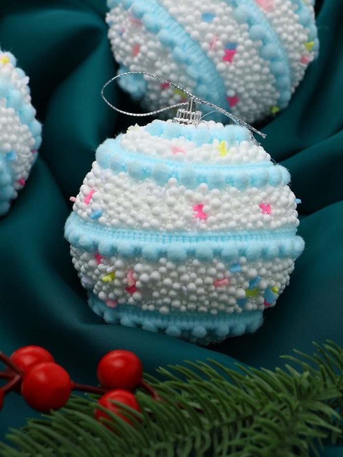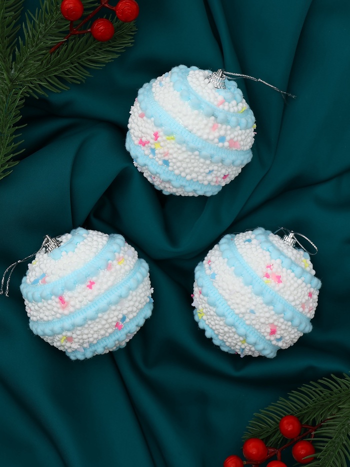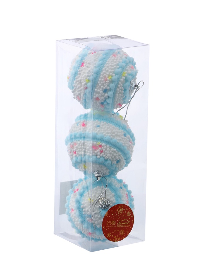 Создаём праздничное настроение Эти шары отражают огни гирлянд и подчёркивают зимнюю свежесть в интерьере. Их спокойный голубой оттенок помогает создать атмосферу уюта и гармонии, делая оформление ёлки завершённым и стильным. КомплектацияНабор шаров - 3 штуки. Комментарии к товару