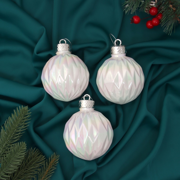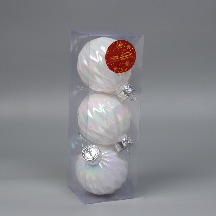 Создайте атмосферу зимней свежести и уюта Эти шары вносят в праздничный интерьер спокойствие и чистоту, отражая свет гирлянд и свечей. Их универсальный дизайн впишется в разные стилистические решения, помогая сформировать гармоничное и стильное оформление новогодней ёлки. КомплектацияНабор шаров - 3 штуки. Комментарии к товару