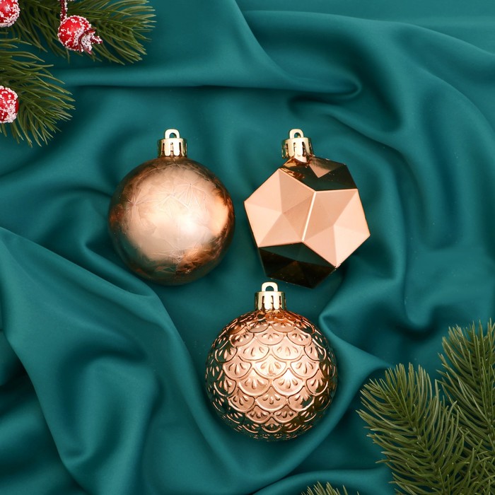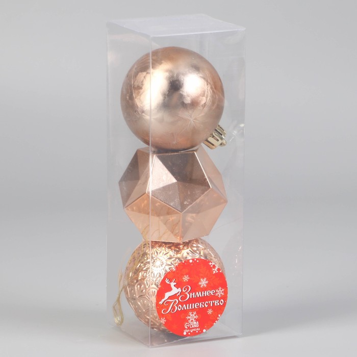 Создаём праздничное настроение Грани на шарах отражают свет гирлянд, придавая интерьеру динамику и глубину. Золотистый цвет напоминает о зимнем сиянии и тепле, создавая уютную атмосферу. Такой набор станет лаконичным акцентом в новогоднем декоре, подчёркивая традиции и стиль праздника. КомплектацияНабор шаров - 3 штуки. Комментарии к товару