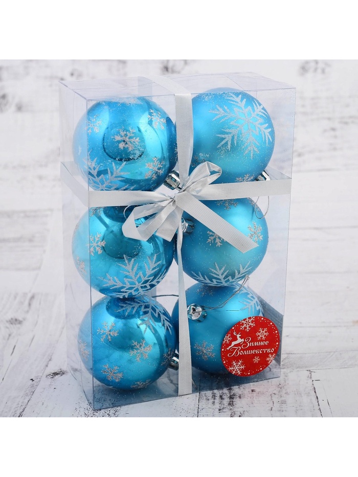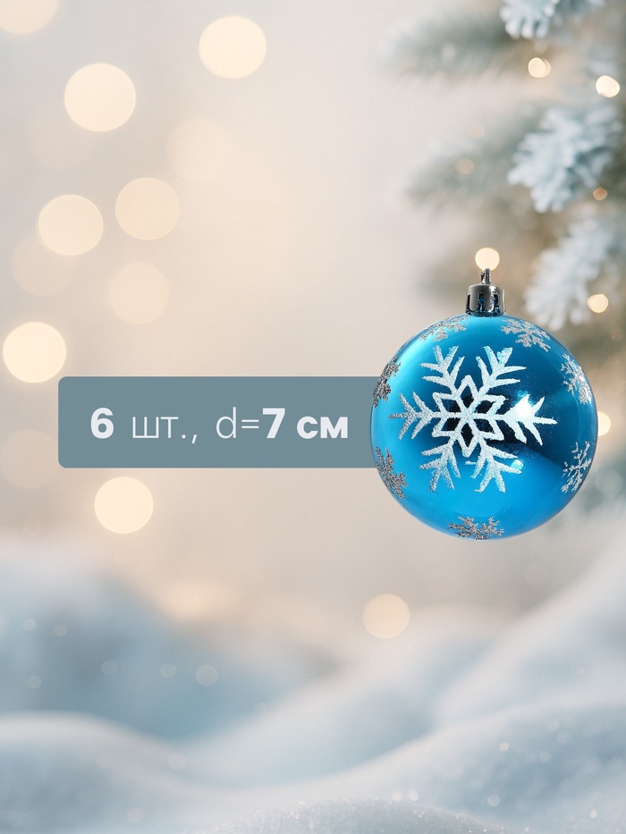 Новогодние шары «Снегопад» — это мягкий и стильный набор для украшения ёлки в голубой гамме. В комплекте 6 пластиковых игрушек диаметром 7 см с рисунком, выполненных в стиле шебби-шик и фьюжн. Это решение для тех, кто хочет добавить дереву зимнего света, уюта и доброго настроения без лишней пестроты.