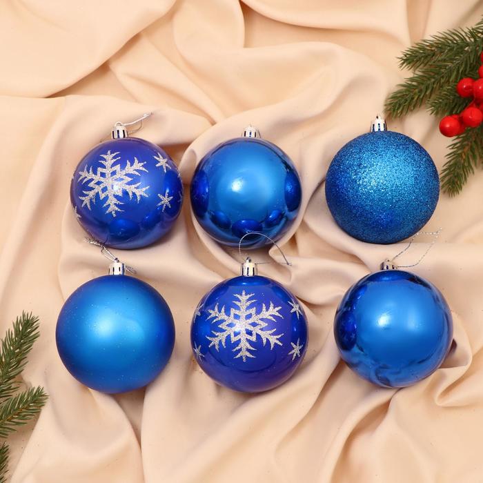 Праздник начинается с одной снежинки Эти шары создают образ Нового года, где каждый элемент работает на общий стиль и зимнее настроение. Синий цвет и точный рисунок делают ёлку частью вашей семейной истории. Используйте их как основу или как дополнение к уже имеющемуся декору — они одинаково хорошо усиливают атмосферу торжества и предпраздничного уюта. КомплектацияНабор шаров - 6 штук. Комментарии к товару