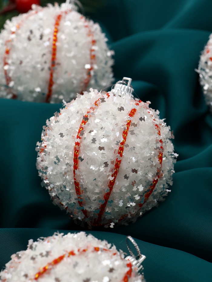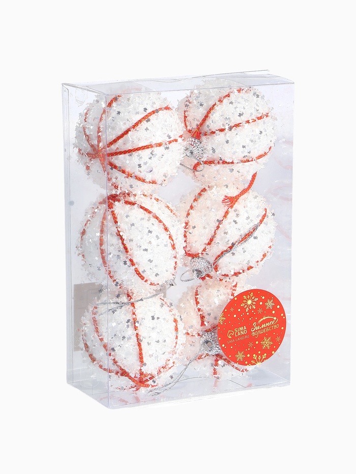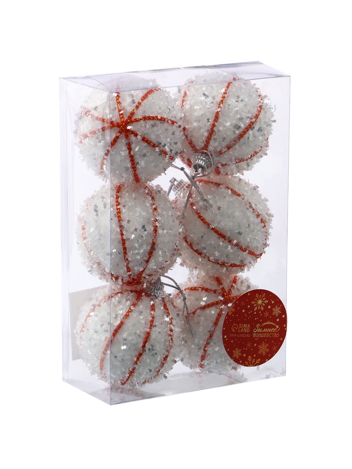 Набор из шести белых ёлочных шаров диаметром 6 см украшен тонким рисунком, который добавляет лёгкость и элегантность праздничному оформлению. Пластиковые шары гармонично впишутся в любой зимний интерьер, создавая атмосферу чистоты и свежести.