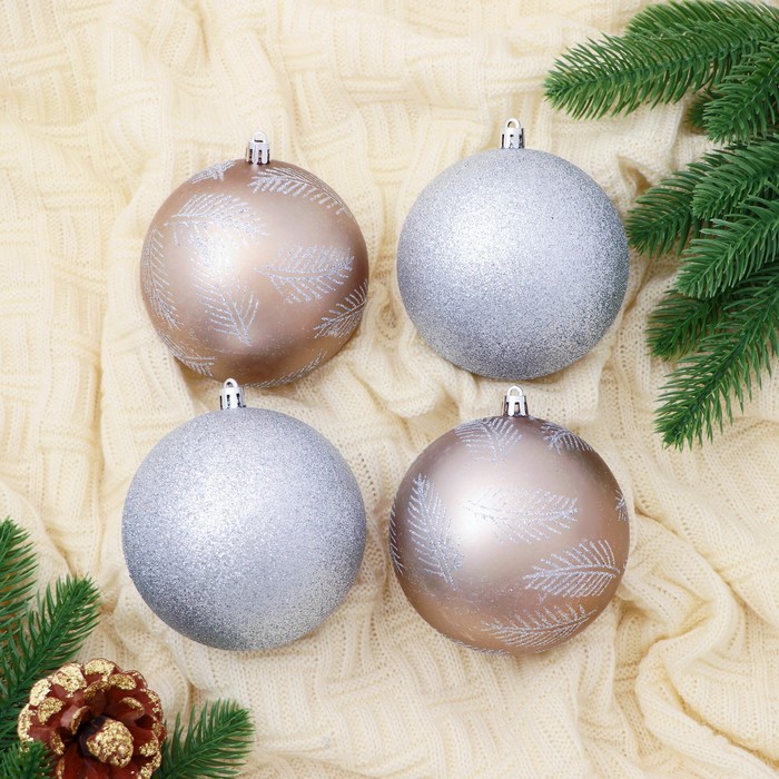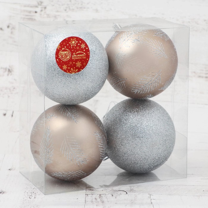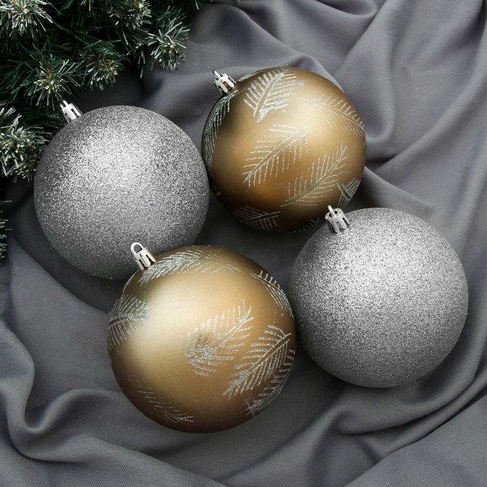 Праздник начинается с зимнего света Эти шары превращают ёлку в пространство холодного блеска и тёплых воспоминаний. Серебристо-золотистые оттенки, крупные формы и мягкий дизайн делают их центральным элементом декора. Используйте игрушки как основу или дополнение — они одинаково хорошо работают в разных стилистических решениях и образах праздника. КомплектацияНабор шаров - 4 штуки. Комментарии к товару