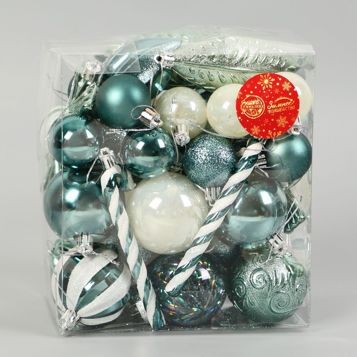 Новогодний декор «Зимняя радость» — это ёлочные игрушки, созданные для тех, кто любит украшать дом к празднику с душой. В наборе 40 пластиковых элементов в бело-зелёной гамме, оформленных в разных стилях: от шебби-шик до советской классики. Разнообразие форм и сочетание однотонных и украшенных деталей позволяют собрать ёлку с характером.