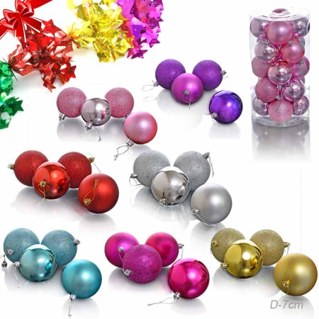 Шары из пластика матовые и глянцевые. В наборе 20 шт диаметром 7 см. Они не уступают по качеству и привлекательности классическим стеклянным игрушкам. Преимущество пластиковых шаров: они прочны, безопасны для малышей, приемлемы по цене. Новогодние ШАРЫ - традиционный русский наряд на новогоднюю елку. В каталоге нашего интернет-магазина вы найдете искусственные елки, елочные игрушки, новогодние шары, свечи, гирлянды, блестящие бусы и растяжки из фольги. Новогодние украшения – превосходный подарок на Новый Год вашей семье, близким или друзьям. Интернет-магазин http://galeontrade.ru/ – простой и удобный способ купить елочные украшения оптом и в розницу! Доставка во многие города России бесплатная.