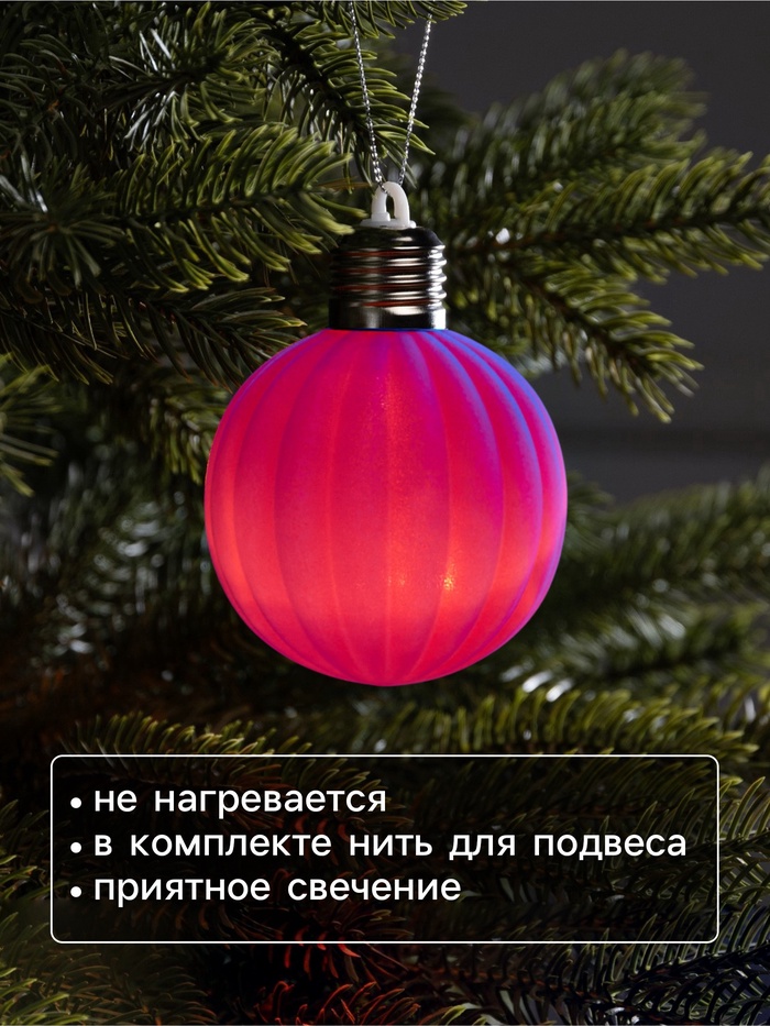 Габариты: 8 x 8 x 8 Страна: Китай В боксе: 400 шт В наборе: 1 шт Состав: Батарейка, металл, пластик Материалы: батарейка, металл, пластик Фасовка: по 1 шт Индивидуальная упаковка: Пластмасовая коробка Габариты товара: 12 см × 8 см × 8 см Сертификат: Не подлежит сертификации Набор: Нет Цвет: Белый Гарантийный срок, мес.: 6 Диаметр шара, см: 8 Символ года: Нет Материал: Пластик Откройте для себя волшебство новогоднего декора с этим изысканным шаром в малиновом бархате диаметром 8 см. Его яркий цвет и мягкая текстура создадут атмосферу тепла и уюта, наполняя ваш дом праздничным настроением. Этот шар станет отличным акцентом в любом интерьере, привнося нотку изысканности и стиля. Светодиод с тёплым белым свечением добавляет шарму и создает мягкий свет, который прекрасно подходит для вечерних посиделок и праздничных мероприятий. Благодаря питанию от трёх батареек LR44, вы можете разместить его в любом удобном месте, не беспокоясь о проводах.