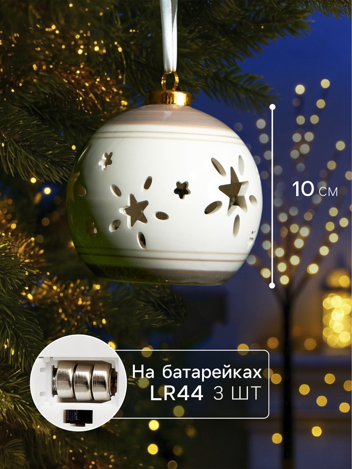 Ёлочный шар со светодиодами «Сияющие звёзды» станет изысканным украшением вашего праздничного интерьера. С его помощью любой уголок засияет уютным светом и наполнится теплотой. Благодаря своему компактному размеру он легко впишется в любую композицию и подарит ощущение волшебства.