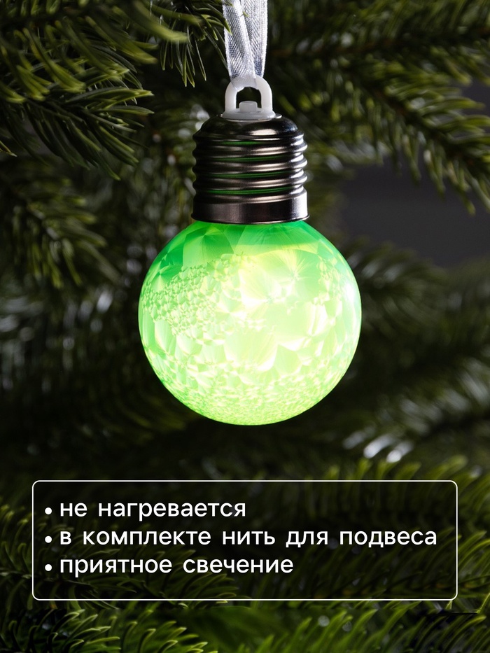 Праздничное настроение: Этот ёлочный шар станет прекрасным подарком для всех любителей новогоднего украшения и позволит добавить немного магии в празднование. Позвольте этой светящейся декорации наполнить ваш дом уютом и радостью! Комментарии к товару