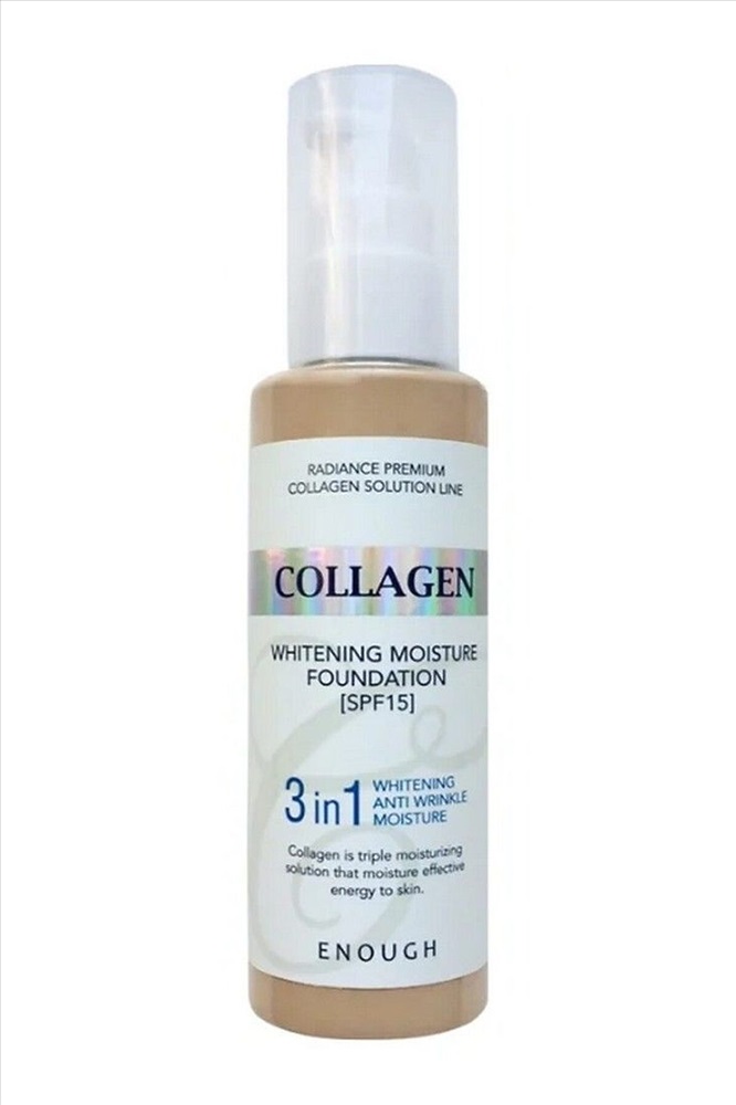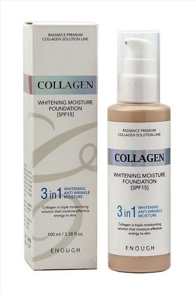 ID товара: 1107783 Сезон: Демисезон Объем: 100 мл Вес нетто: 0.1 Д-Ш-В: 4/5/10 Назначение: Лицо Производитель: Enough Срок годности (мес): 36 Страна бренда: Россия Страна производства: Республика Корея Enough Collagen Whitening Moisture Foundation 3 in 1 SPF15 #21 Тональный крем для лица Enough Collagen Whitening Moisture Foundation 3 In 1 обладает легкой текстурой, насыщенной пигментом, за счет чего создается невесомое пигментированное покрытие, которое с легкостью маскирует любые несовершенства кожи, придавая лицу свежий, отдохнувший и сияющий вид. Коллагеновый тональный крем выравнивает рельеф кожи, маскируя расширенные поры, создает ровное, идеально гладкое и стойкое покрытие, не утяжеляя макияж, не создавая эффекта маски или пленки на лице, не провоцируя воспалительных процессов и закупорку пор. После нанесения на лицо тональный крем в течение нескольких минут подстраивается под тон кожи, создавая эффект естественного макияжа. Увлажняет и успокаивает - смягчает кожу, восполняет недостаток влаги в клетках, поддерживает оптимальный уровень увлажненности кожи в течение всего дня, устраняет зуд, покраснение и раздражение, ускоряет заживление микротравм, царапин и ранок. Осветляет - устраняет застои меланина в клетках кожи, осветляя гиперпигментацию, следы пост-акне, веснушки. Оказывает лифтинг-эффект - повышает эластичность кожи, укрепляет тургор и стенки капиллярных сосудов, уплотняя тонкую и дряблую кожу, предотвращая преждевременное старение и потерю тонуса. Также, тональный крем от бренда Enough защищает кожу от негативного воздействия УФ-лучей. Основные действующие компоненты: Морской коллаген улучшает общее состояние кожи: разглаживает и выравнивает ее, делает упругой и эластичной, убирает мелкие морщинки и освежает. Обладает ранозаживляющим и успокаивающим действием, удерживает влагу в глубоких слоях кожи. Оказывает регенерирующее действие. Гиалуроновая кислота создает на коже невидимый барьер, препятствующий испарению влаги, улучшает структуру кожи, способствует регенерации клеток кожи, сокращает мелкие морщинки, делает кожу гладкой и нежной. Ниацинамид ускоряет процесс обновления клеток, уменьшает количество морщинок, увлажняет и сужает поры, защищает от действия свободных радикалов. Аденозин один из самых часто используемых компонентов при борьбе с возрастными изменениями. Подтягивает, разглаживает морщины, ускоряет метаболизм и предотвращает возрастные изменения. Экстракт центеллы азиатской обладает противовоспалительным и ранозаживляющим действием, способствует восстановлению барьерных свойств кожи и удержанию влаги, снижает чувствительность кожи, уменьшает отеки, оказывает сосудоукрепляющее действие и уменьшает купероз. Солнцезащитный фактор: SPF15+ PA+. Подходит для всех типов кожи. Рекомендуется для сухой, обезвоженной, комбинированной кожи, склонной к жирности. Способ применения Нанесите необходимое количество тонального крема на лицо легкими массажными движениями с помощью пальцев либо воспользуйтесь кистью, спонжем. Подождите 5-7 минут, чтобы крем подстроился под тон Вашей кожи, затем продолжите нанесение макияжа. Для снятия средства воспользуйтесь гидрофильным маслом. Комментарии к товару
