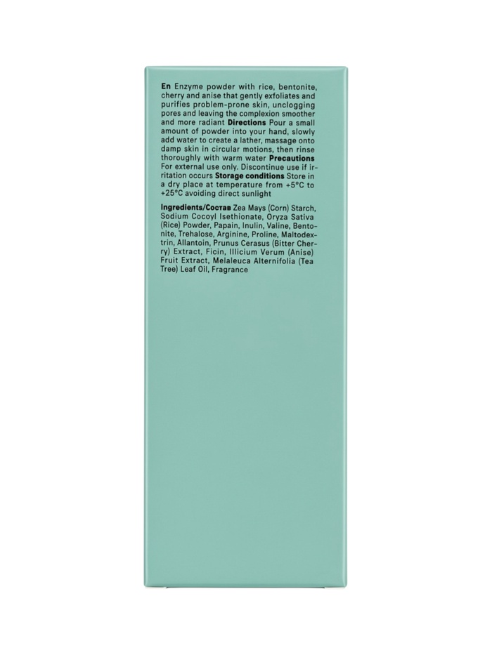 Активные ферменты способствуют деликатному обновлению кожи, а ухаживающие компоненты помогают снизить раздражение, поддерживают увлажнение и делают кожу более гладкой и свежей. Подходит для регулярного применения для лица и тела.