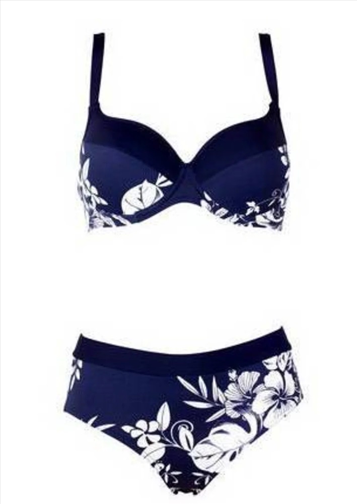 Бюстгальтер купальный из набивного трикотажного полотна на подкладке с уплотненными чашечками и застежкой по спинке. бретели бюстгальтера - не съемные, регулируемые.