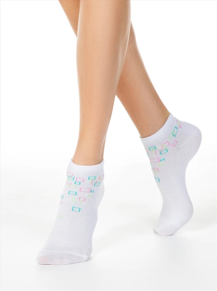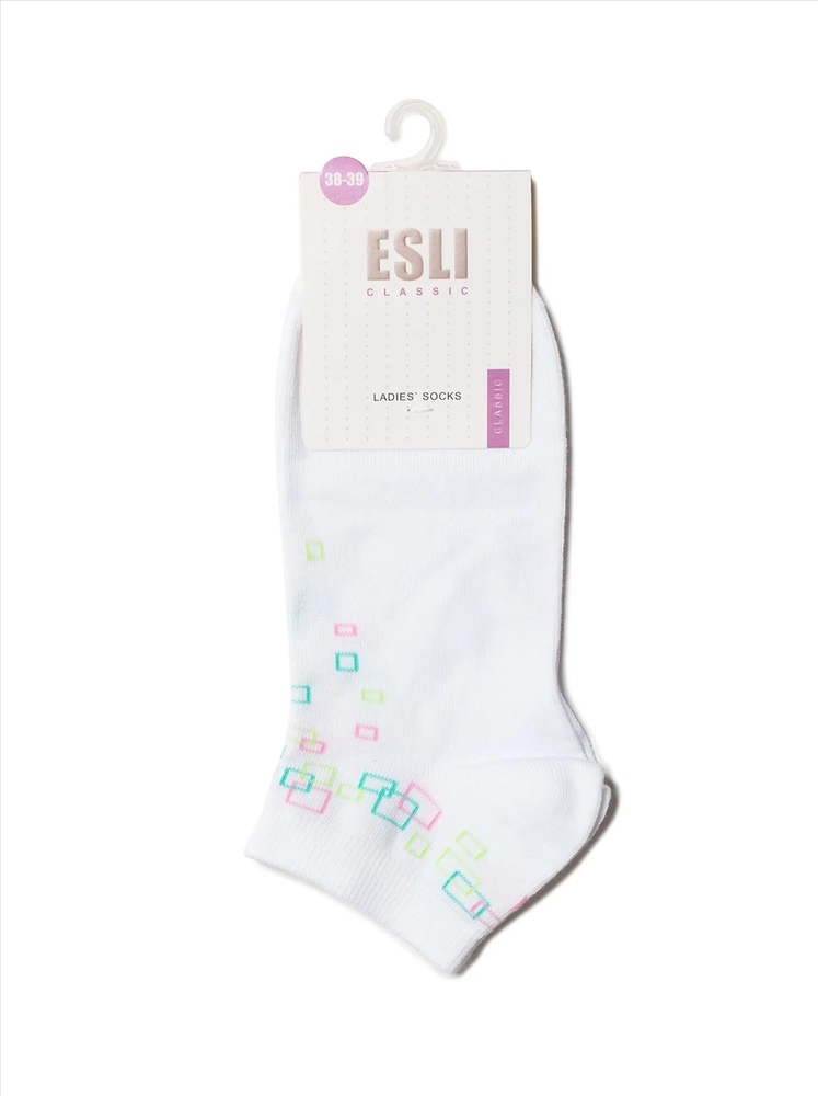 Производитель: ESLI; Артикул поставщика: CLASSIC; Состав: хлопок 76%, полиэстер 22%, эластан 2%; Год: 2021; Страна: Беларусь; Российский размер: 23 Укороченные спортивные женские носки из хлопка, с рисунками.