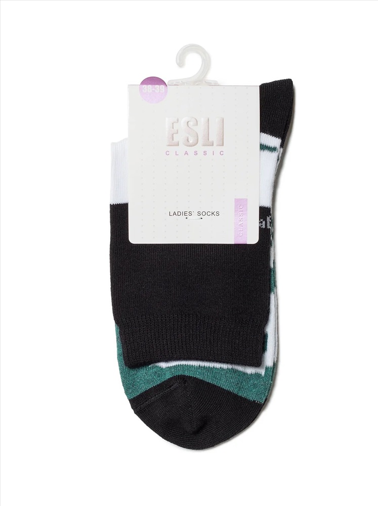Производитель: ESLI; Артикул поставщика: CLASSIC; Состав: хлопок 68%, полиэстер 24%, полиамид 6%, эластан 2%; Год: 2021; Страна: Беларусь; Российский размер: 23 Классические женские носки из хлопка, с рисунками