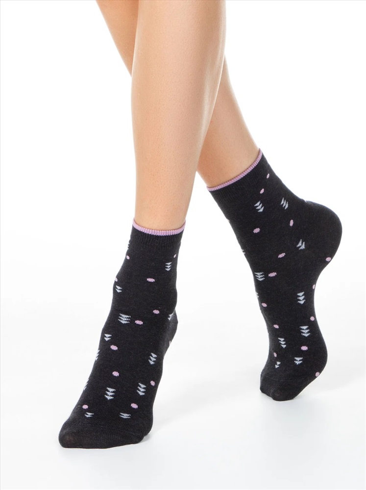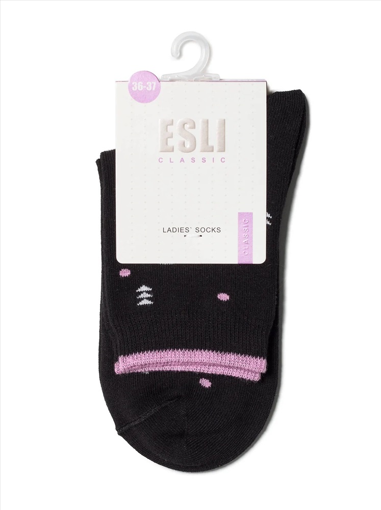 Производитель: ESLI; Артикул поставщика: CLASSIC; Состав: хлопок 68%, полиэстер 24%, полиамид 6%, эластан 2%; Год: 2021; Страна: Беларусь; Российский размер: 23 Классические женские носки из хлопка, с рисунками