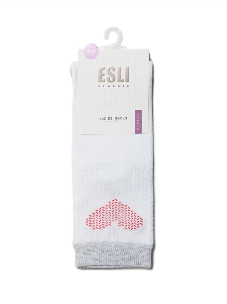 Производитель: ESLI; Артикул поставщика: CLASSIC; Состав: хлопок 68%, полиэстер 24%, полиамид 6%, эластан 2%; Год: 2021; Страна: Беларусь; Российский размер: 23 Классические женские носки из хлопка, с рисунками