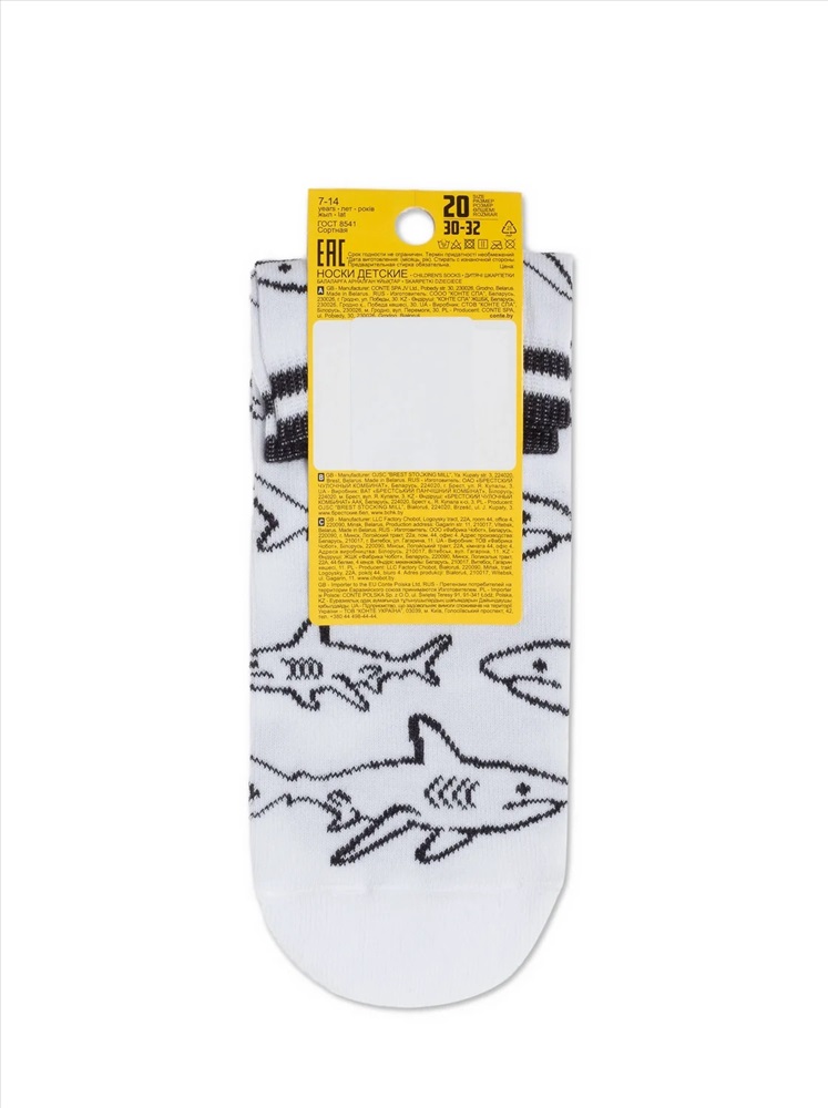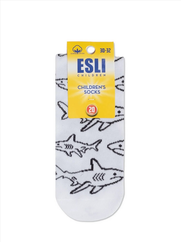 Производитель: ESLI; Длина стопы: 18-20; Артикул поставщика: "Shark"; Состав: хлопок 62%, полиамид 18%, полиэстер 18%, эластан 2%; Год: 2021; Страна: Беларусь