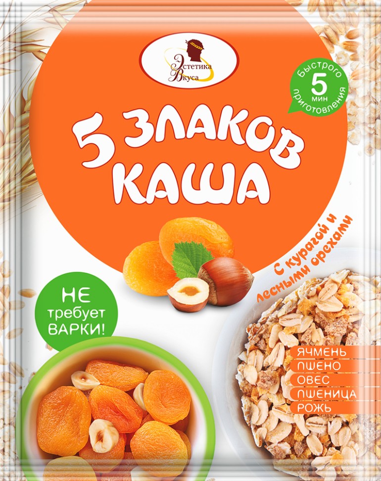 Состав: хлопья не требующие варки (овсяные, ржаные, пшеничные, пшенные, ячменные), сахар, заменитель сухих сливок растительного происхождения, курага, арахис, соль, фундук, ароматизаторы «лесной орех», «сливки».