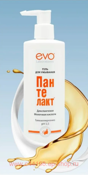 Гель для умывания с молочной кислотой и декспантенолом EVO Пантелакт обладает оптимальным для кожи рН 5.5 и выполняет следующие функции: • мягко и эффективно очищает кожу лица от излишнего количества себума и других загрязнений; • интенсивно увлажняет и ухаживает за кожей любого типа; не допускает сухости и стянутости даже при умывании жесткой и хлорированной водой; • сохраняет здоровье и красоту кожного покрова.