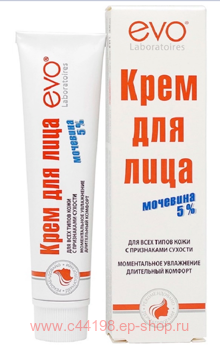 EVO Крем для лица с мочевиной 5% для всех типов кожи с признаками сухости - моментально увлажняет сухую кожу лица, делает её мягкой и гладкой на долгое время. Оптимальное содержание мочевины, усиленное ниацинамидом (витамином В3): моментально и ощутимо увлажняет кожу, устраняет шелушение, стянутость и сухость кожи, восстанавливает эпидермальный барьер, обеспечивает гладкость, мягкость и упругость кожи. Рекомендован врачами-дерматологами для ежедневного применения в качестве увлажняющего дневного крема для сухой кожи лица, шеи и области декольте. Используйте утром и/или вечером, и в качестве основы под макияж. Объем крема составляет 46 мл.