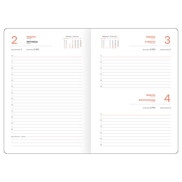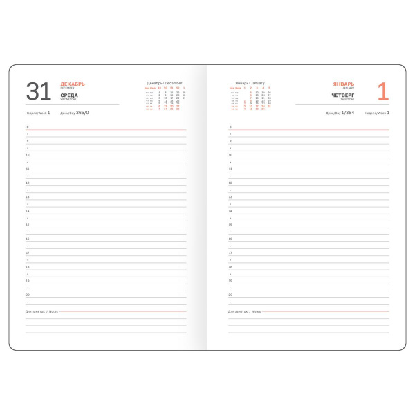 В ежедневнике предусмотрена справочная информация, ежемесячный планер, календарь и другие полезные сведения. Индивидуальная упаковка в пакет.