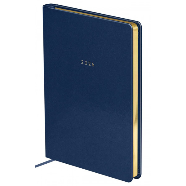 Датированный ежедневник на 2026 год BG формата А5 серии "Windsor" в твёрдой обложке синего цвета, выполненной из высококачественной экокожи, отлично подойдёт тем, кто предпочитает классику в дизайне и комфорт в деталях. Золотой срез придает особый шарм. Внутренний блок состоит из 176 листов офсетной тонированной бумаги плотностью 70 г/м2 и печатью в 2 краски. Скруглённые уголки листов с перфорацией. Изделие представлено в размере 145*205 мм.