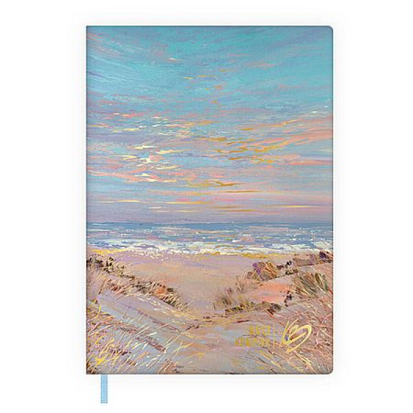 Ежедневник недатированный ESCALADA, #ВЛАД КРАВЧУК, А6+, 120 л., арт. 70698/ 20 ВЕЧЕР НА МОРЕ (кожзам: 126х174 мм, мягкий переплёт, запаянный край, материал обложки: искусственная кожа "Наппа"; способ крепления блока: ниткошвейный; декор: печать полноцветная, тиснение фольгой; вн. блок: 120 л., кремовый офсет 70 г/м2, печать в одну краску (линия), справочный материал: есть; перфорация углов блока: нет; отделка среза: окрашивание пантоном; закладка/-и: одно ляссе, каптал: есть; форзац: печать пантоном, особенности: на обложке ежедневника использованы живописные работы современного художника, участника многочисленных выставок и крупнейших арт-салонов России и за рубежом, члена Творческого союза художников России и Международного художественного фонда – Влада Кравчука; персонализация возможна: нет; индивидуальная упаковка: промостикер + ПЭТ-пакет)