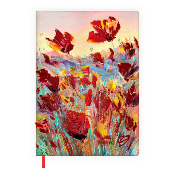 Ежедневник недатированный ESCALADA, #ВЛАД КРАВЧУК, А6+, 120 л., арт. 70699/ 20 МАКИ (кожзам: 126х174 мм, мягкий переплёт, запаянный край, материал обложки: искусственная кожа "Наппа"; способ крепления блока: ниткошвейный; декор: печать полноцветная, тиснение фольгой; вн. блок: 120 л., кремовый офсет 70 г/м2, печать в одну краску (линия), справочный материал: есть; перфорация углов блока: нет; отделка среза: окрашивание пантоном; закладка/-и: одно ляссе, каптал: есть; форзац: печать пантоном, особенности: на обложке ежедневника использованы живописные работы современного художника, участника многочисленных выставок и крупнейших арт-салонов России и за рубежом, члена Творческого союза художников России и Международного художественного фонда – Влада Кравчука; персонализация возможна: нет; индивидуальная упаковка: промостикер + ПЭТ-пакет)
