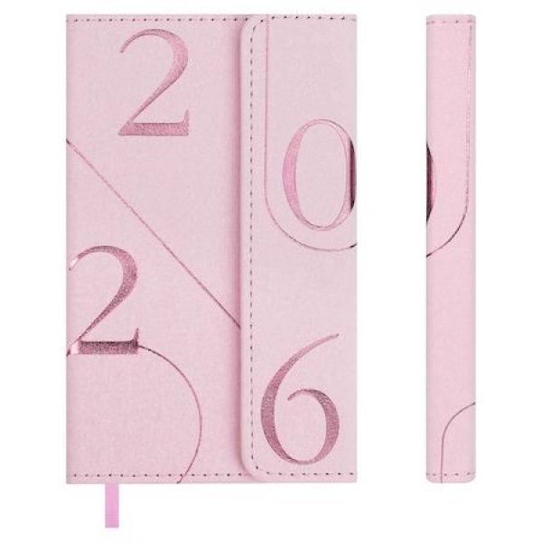 Еженедельник датированный 2026 ESCALADA, 95х155 мм, 64 л., арт. 70353/ 40 БЬЯНЧИНИ РОЗОВЫЙ (кожзам: твёрдый переплёт, материал обложки: искусственная кожа "Бьянчини"; декор: тиснение фольгой; способ крепления блока: ниткошвейный; вн. блок: 64 л., белый офсет 70 г/м?, печать в две краски (линия), справочный материал: есть; перфорация углов блока: нет; закладка/-и: одно ляссе; каптал: есть; форзац: без печати; особенности: магнитный клапан; персонализация возможна: нет; индивидуальная упаковка: ПЭТ-пакет)