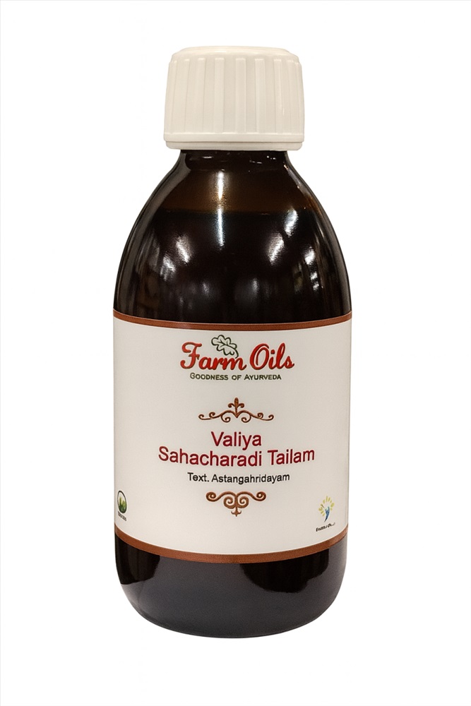 «Валья Сахачаради Тайлам» — аюрведическое массажное масло, состоящее из смеси 30 трав, настоянных на молоке, с добавлением кунжутного масла. Показания к применению: заболевания суставов, варикоз и предрасположенность к нему, онемение ног, ревматизм, артрит, артроз, боль в ногах и другие.