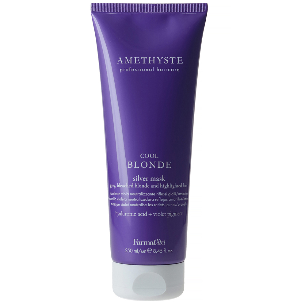 Антижёлтая фиолетовая маска для седых, обесцвеченных или мелированных волос. Фиолетовая маска для седых, осветленных и мелированных волос, эффективно нейтрализующая нежелательные желтые/оранжевые оттенки. Содержит ГИАЛУРОНОВУЮ КИСЛОТУ для интенсивного увлажнения и придания волосам мягкости и блеска.