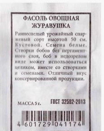 Раннеспелый высокобелковый сорт с высокими питательными и целебными свойствами. Созревание наступает на 40-45 день после появления всходов. Растения кустовые, компактные, высотой 40-50 см. Бобы гладкие, длиной 12-13 см, шириной 0,9-1,1. Створки бобов без пергаментного слоя, на вкус очень нежные и сочные. Недозрелые бобы используют в домашней кулинарии, для консервирования и замораживания. Сорт устойчив к аскохитозу и антракнозу. Отличается стабильно высокой урожайностью – до 1,5 кг/м2. Фасовка 5г Комментарии к товару