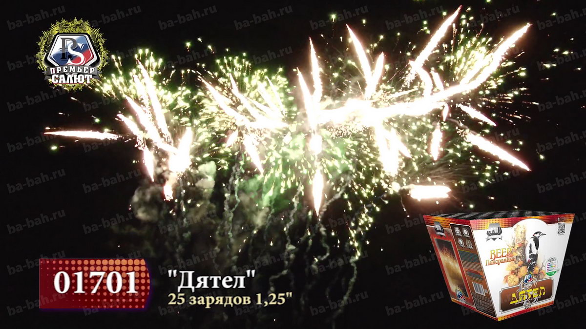 Калибр: 1.25 " Залпы: 25 Время работы: До 20 сек Высота фейерверка: До 30 м Веерный салют: Да Эффекты фейерверка: Веер Цвет: Золотой, Зеленый Праздник: День Рождения, Новый Год Размеры упаковки, мм: 305 х 155 х 200 Вес изделия, кг: 3.300 Фасовка: штука Описание: Эффектный веерный салют "Дятел" восхитит вас двухуровневым залпом: нижний уровень - изумрудные звезды, верхний - алые и синие звезды, золотые кокосы, мерцающие пионы красного и зеленого цвета, серебряное мерцание и треск. Для подобного эффекта цена - очень скромная. Комментарии к товару