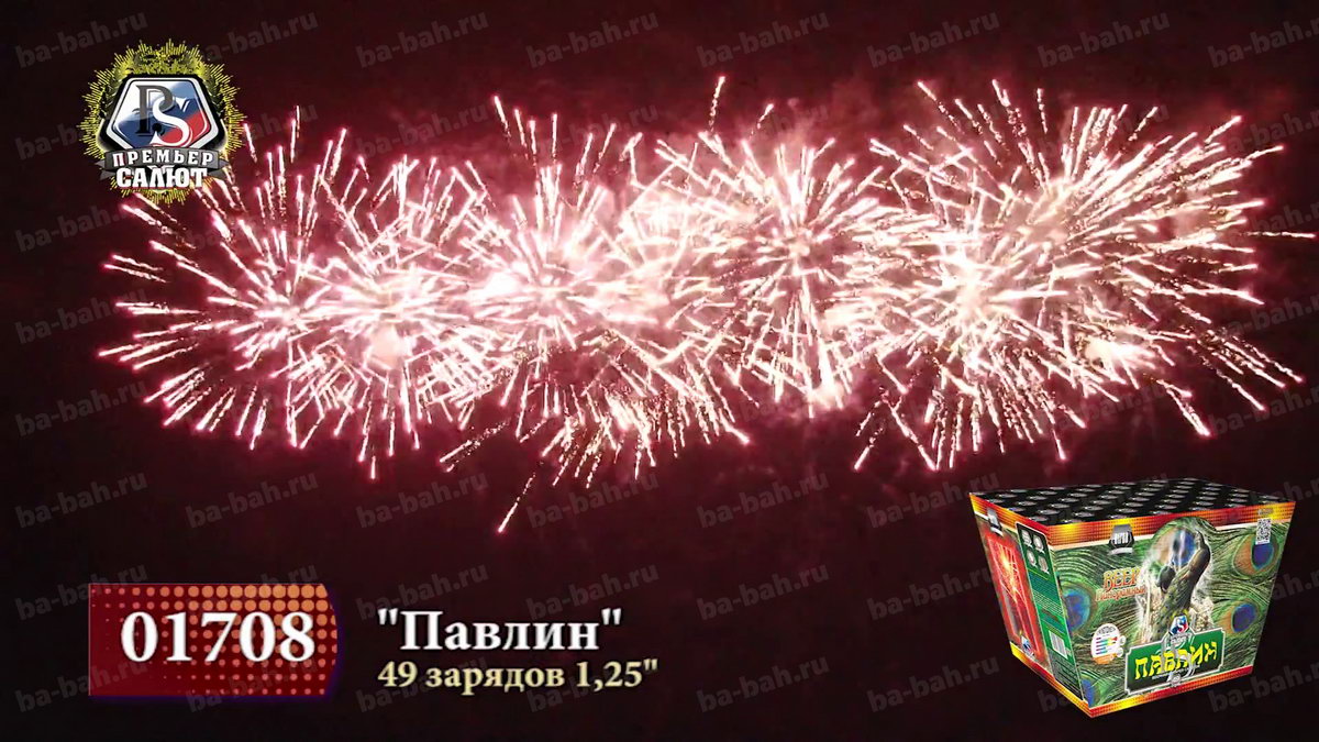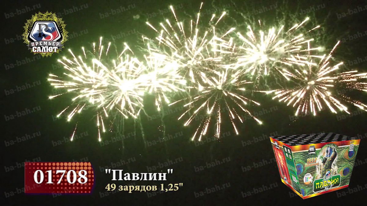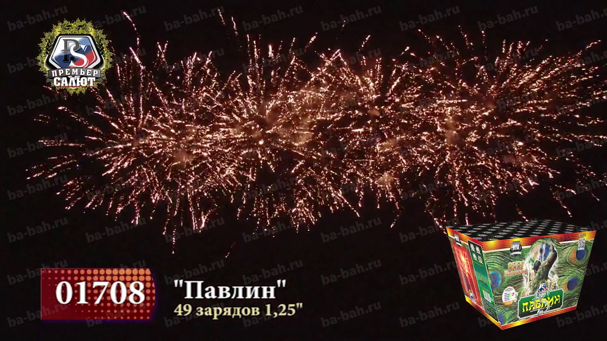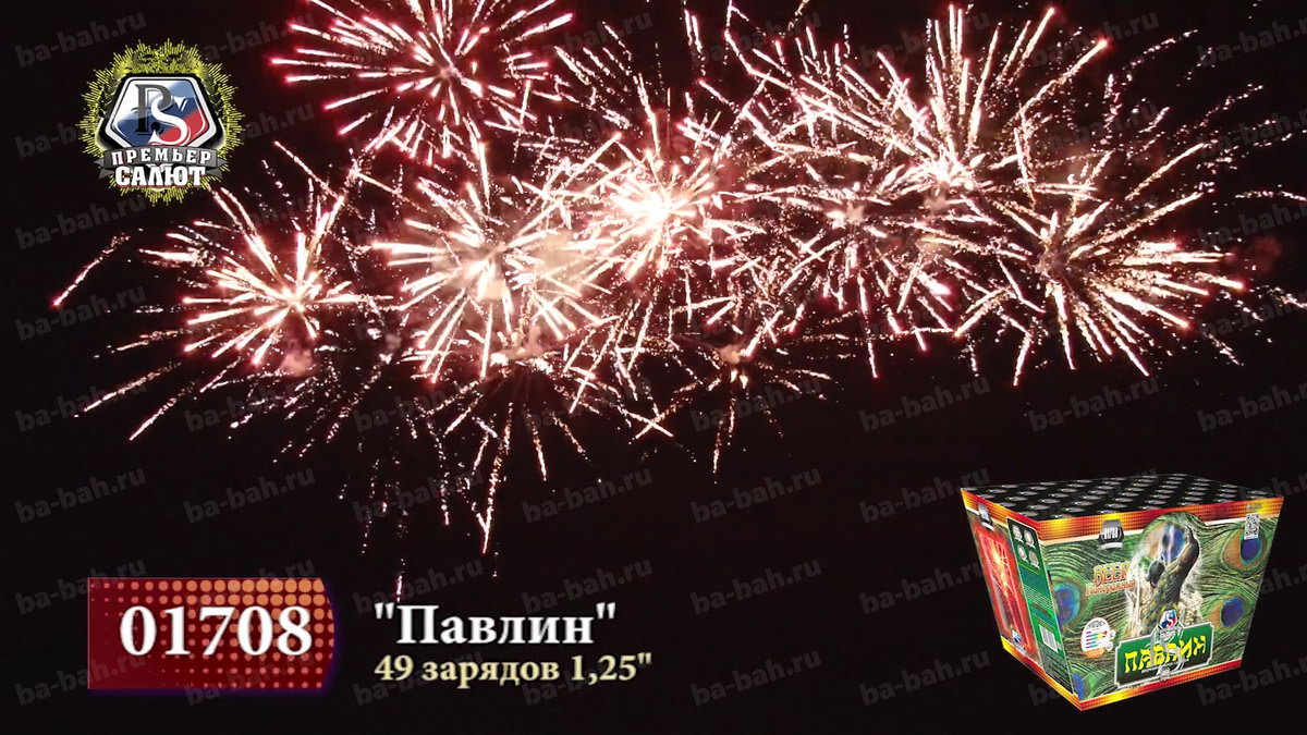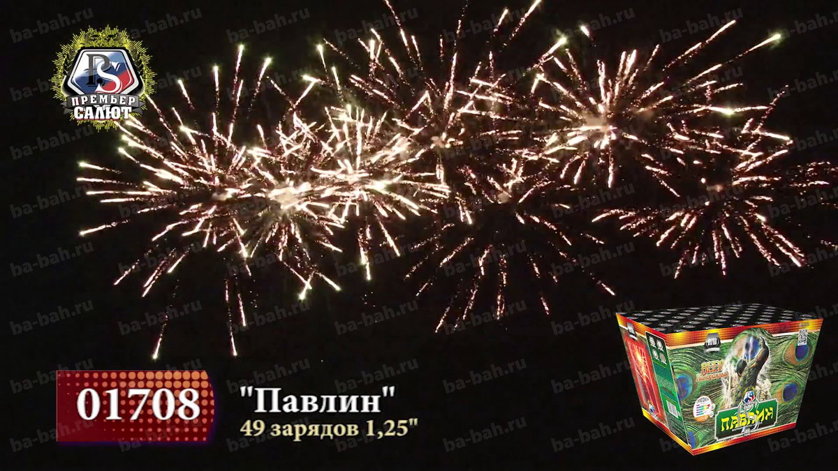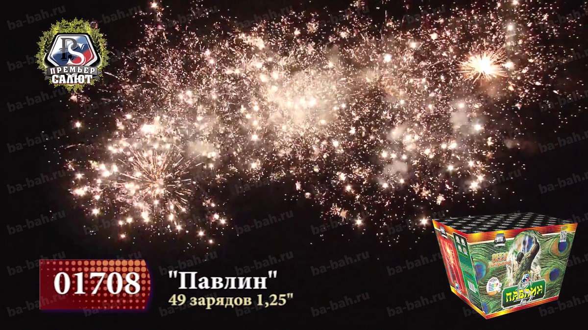 Калибр: 1.25 " Залпы: 49 Время работы: До 25 сек Высота фейерверка: До 30 м Веерный салют: Да Эффекты фейерверка: Веер Цвет: Золотой, Синий, Красный, Зеленый, Серебряный Размеры упаковки, мм: 325 х 170 х 200 Вес изделия, кг: 7.200 Фасовка: штука Число эффектов: 3 Описание: Даже дети знают о красоте и пышности павлиньих хвостов, будто усыпанных драгоценными каменьями. Веерный фейерверк "Павлин" не уступит этой птице: он так же красив и пышен. 49 зарядов создают панораму в форме веера, действительно чем-то напоминающую хвост павлина. Эффекты: 1. На нижнем уровне - золотой трещащий занавес. 2. На верхнем уровне - красные и зеленые волны, короны с синими звездами на острие, золотые хризантемы с зелеными звездами, серебряные короны. 3. Финал: залпы тысячи хризантем. Комментарии к товару