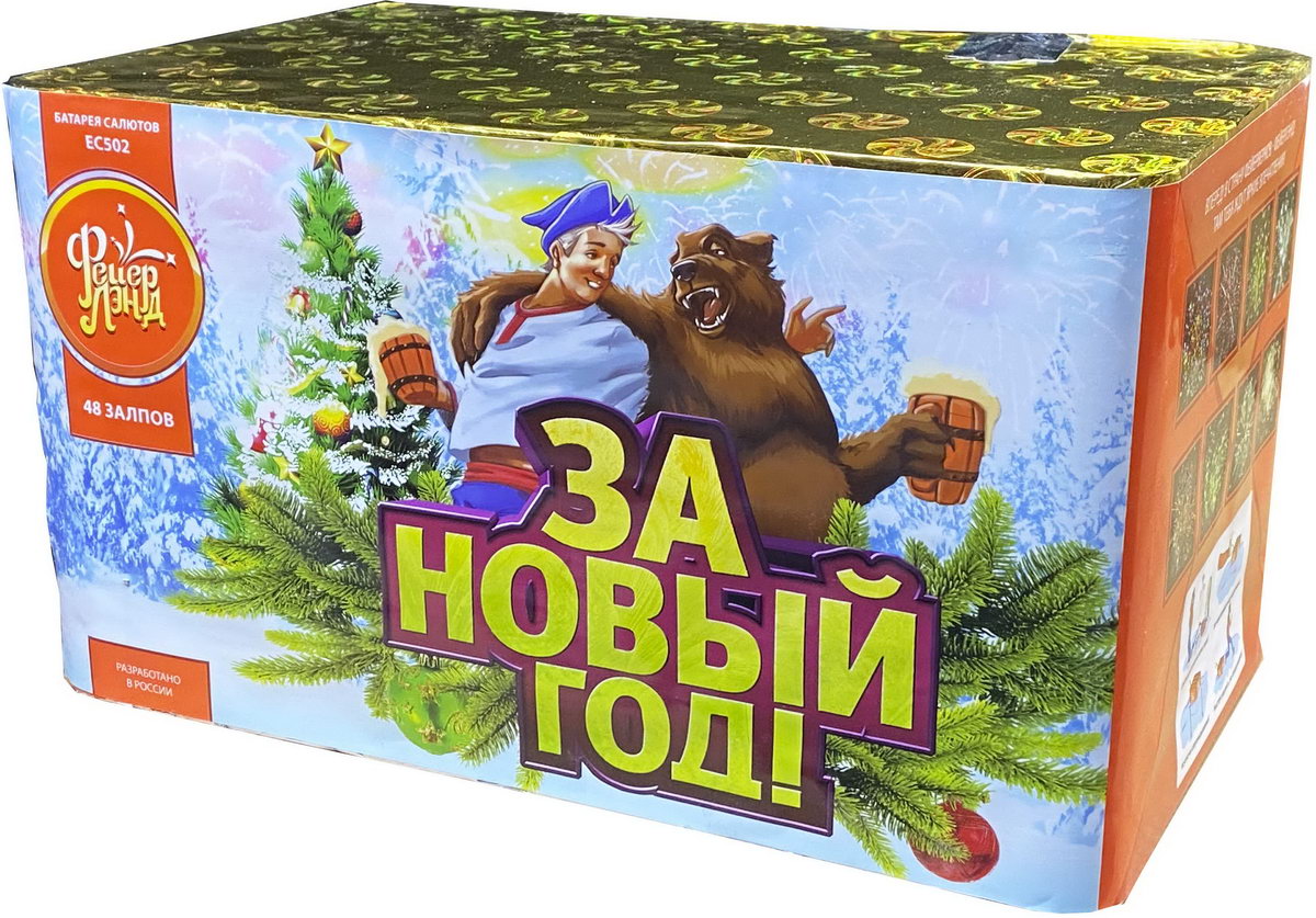 Калибр: 1 " Залпы: 48 Время работы: До 55 сек Высота фейерверка: До 45 м Цвет: Золотой, Фиолетовый, Синий, Зеленый, Белый, Красный, Желтый, Серебряный Праздник: День Рождения, Новый Год Размеры упаковки, мм: 325 х 210 х 185 Вес изделия, кг: 4.450 Фасовка: штука Число эффектов: 8 Описание: У автора оформления упаковки для этого салюта с чувством юмора и иронией все в порядке. Кто же еще мог быть изображен на коробке русского салюта, как не мужик и старый добрый медведь. Не хватает еще балалайки и матрешки. Но здесь и без них есть на что поглазеть. Например: на сферы из розовых огней с искрящимися хвостами золота и мерцания, объемные сферы из синих и жёлтых звёзд, оранжевые кометы с белыми хвостами и зелеными мерцающими огнями, ярко-малиновые огни, переходящие в золотые трещащие облака, игривые бесшумные змейки, золотые стрелы и синие огни. Финал - прекрасный насыщенный пышный цветок из множества медных стрел и чередующихся изумрудных, синих и мерцающих малиновых огоньков. Эффекты не приедаются, и в то же время без нагромождения и лишних ненужных деталей. Как раз то, что надо для торжества. И время для работы салюта не слишком долгое, так что он не успеет Вам наскучить. Наслаждайтесь отличным исполнением, яркой палитрой и занимательными эффектами этого безупречно новогоднего салюта! Эффекты: 1. Сине-красно-зеленая мерцающая сфера (пион). 2. Желтые звезды с пышными хвостами (кокос) и переход серебряного разрыва в красную сферу (красная слива). 3. Желто-зеленая сфера (пион) и облако треска (трещащая хризантема). 4. Мерцающие серебряные букеты (падающие листья). 5. Золотые звезды с пышными хвостами (кокос), красное мерцание и облако треска (трещащий дождь). 6. Зелено-фиолетово-белая мерцающая сфера (пион). 7. Серебряные звезды с пышными хвостами (кокос) и белое мерцание. 8. Финал: Облако треска (трещащая хризантема). Комментарии к товару